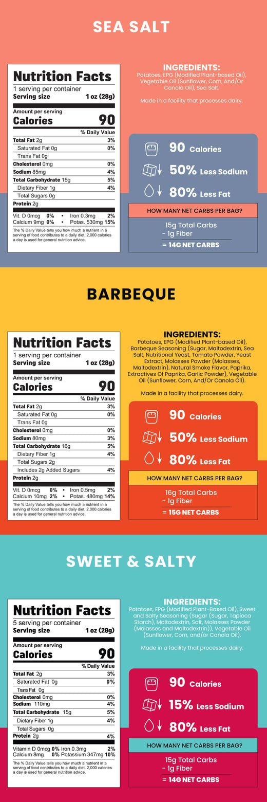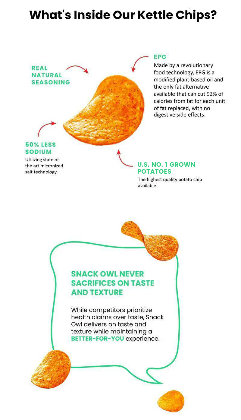 Want chips without the calories? Perfect. If you've ever read the nutritional info on a typical potato chip package, you probably wished you hadn't. We get it. Tasty doesn't always mean healthy. But guess what? We're here to change all that and get you into a healthy relationship with the savory ride. Because you deserve to live in a world where indulging doesn't feel guilty. Nestled in our owl perch, we tried hundreds of recipes to find the right balance of tastiness and texture, and we finally found the right crunch. Welcome to wiser snacking.